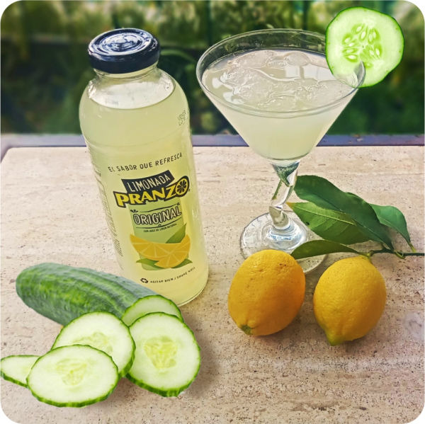 Rallar medio pepino y sacar el excedente de líquido. Mezclar con Limonada Original Pranzo y agregar rodajas de pepino y hielo. Una bebida refrescante para disfrutar en cualquier momento del día.